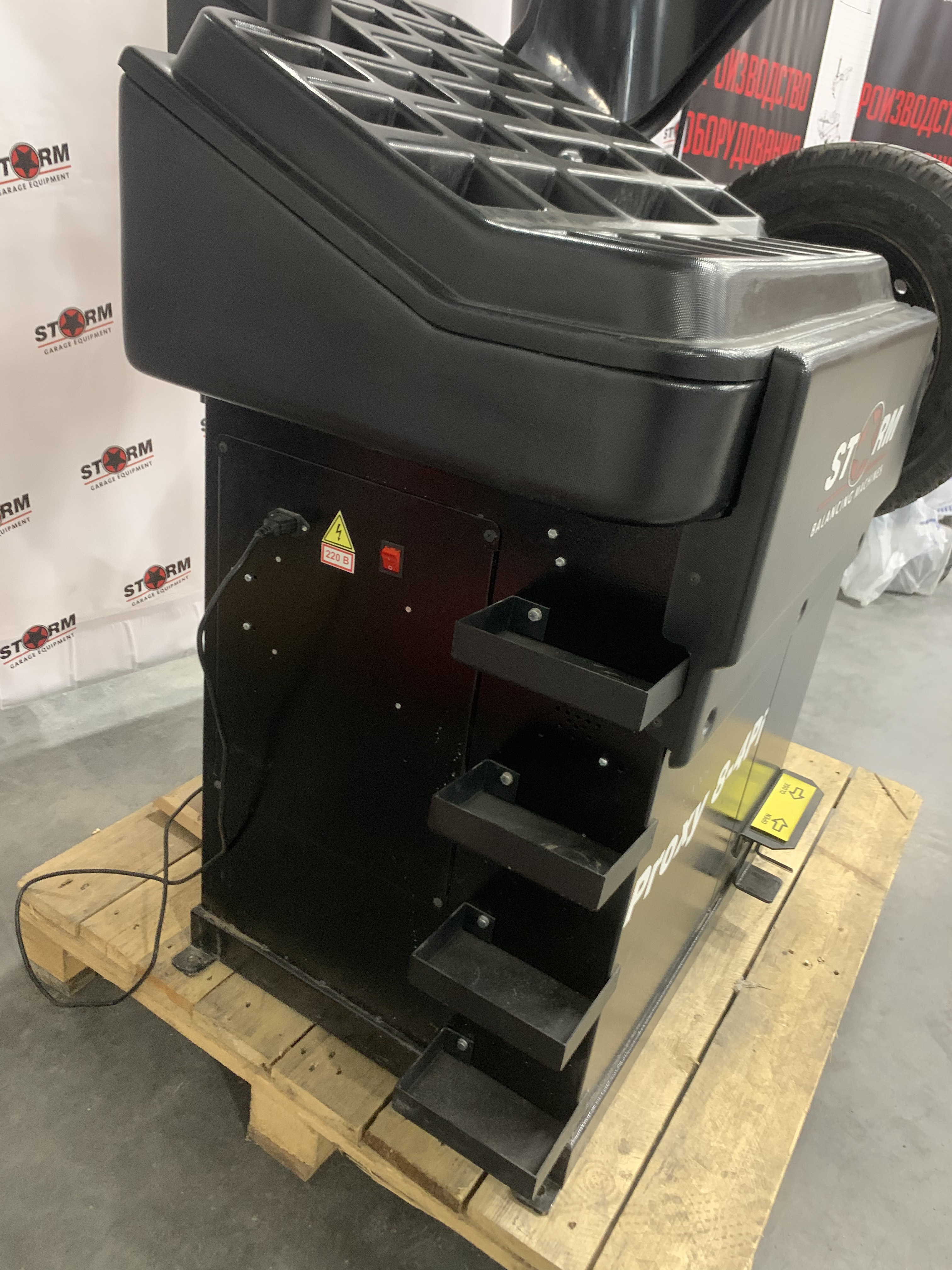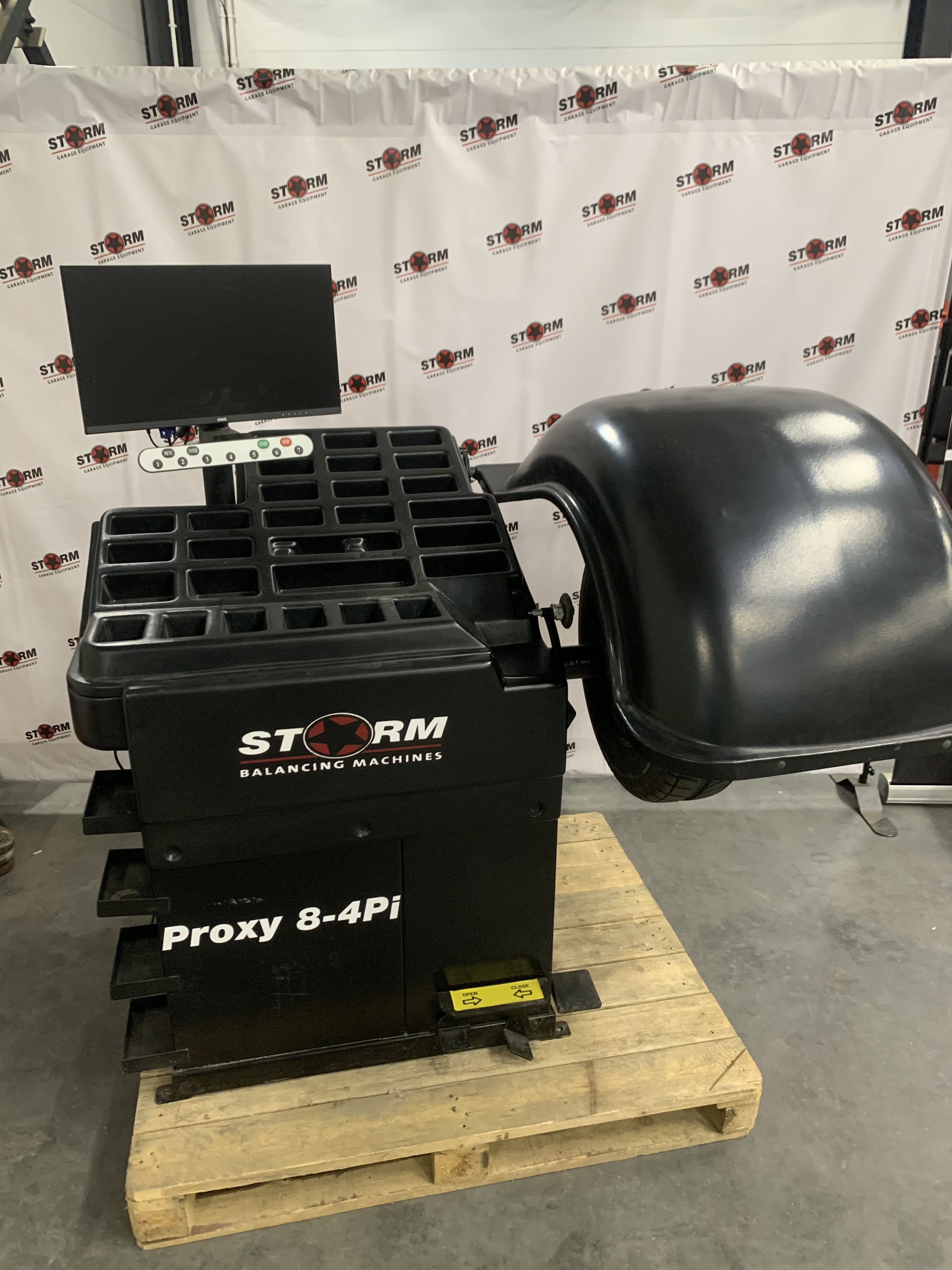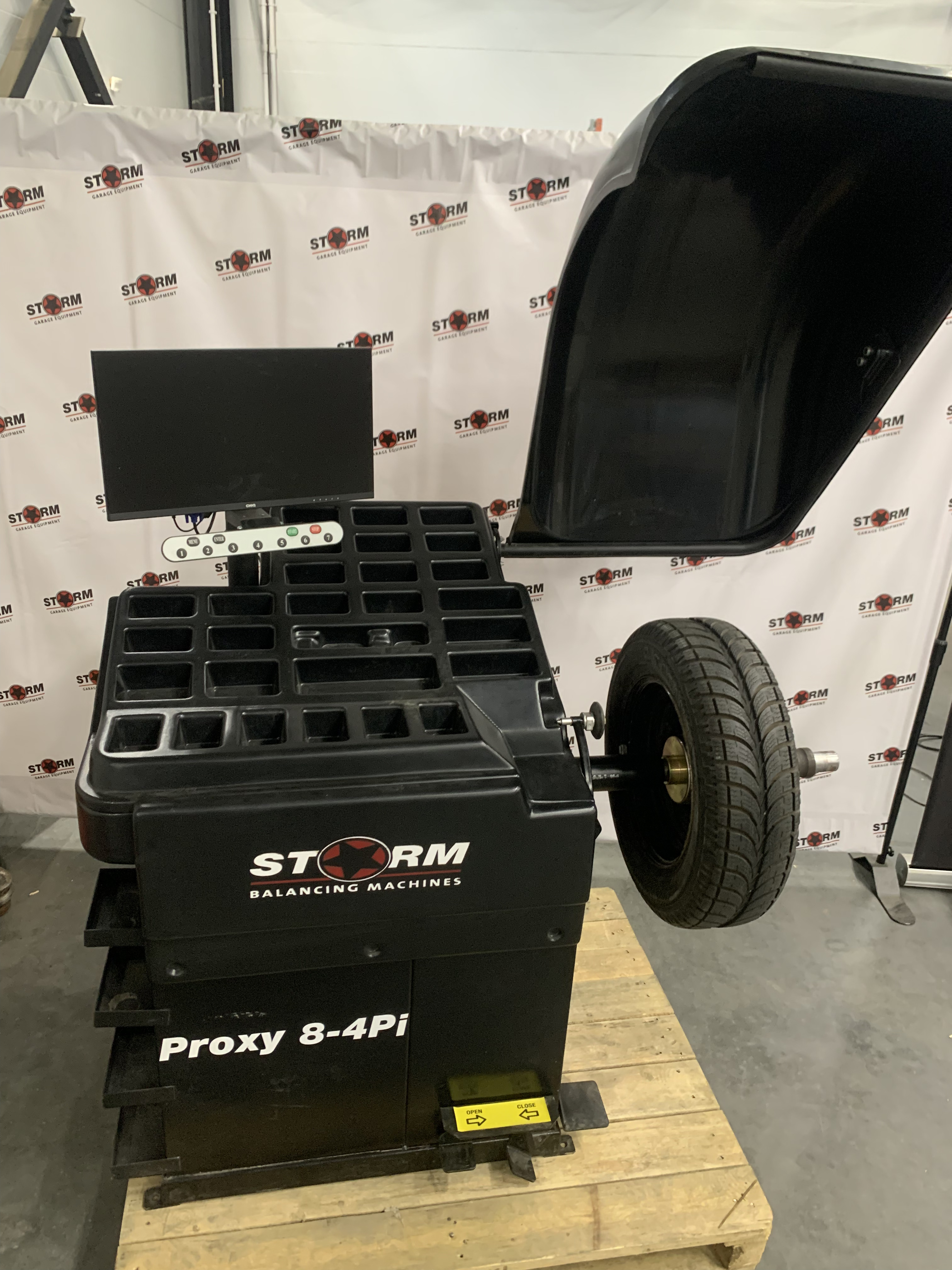 Балансировочный станок СТОРМ Proxy-8-4pi — российское суперавтоматическое оборудование для высокоточной балансировки колёс. Основные характеристики: для легковых авто, микроавтобусов и лёгких грузовиков; максимальный диаметр диска: 30 дюймов; максимальная ширина диска: 20 дюймов; измерение статического и динамического дисбаланса; вычисление массы и положения грузов за один цикл. Особенности: микропроцессорное управление; работа с двумя плоскостями коррекции; совместимость с адаптерами СТОРМ и HAWEKA (включая мото-, фланцевые, кулачковые и цанговые); увеличенный ход захвата: 65 мм; повышенная производительность. Станок произведён на заводе в Санкт-Петербурге.