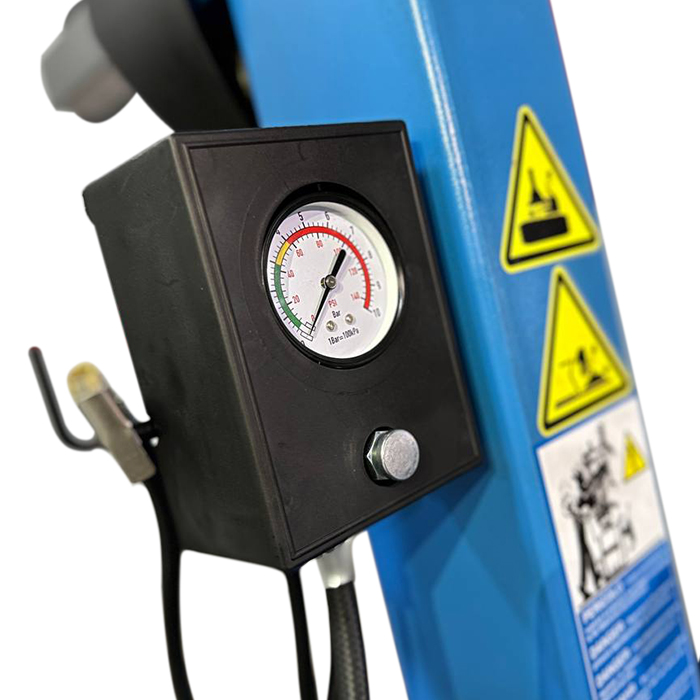 Оснащен системой взрывной накачки” – упрощает и ускоряет монтаж слежавшихся шин на диск, если воздух выходит между шиной и диском во время классической накачки колес при помощи устройства накачивания с педалью управления и манометром.