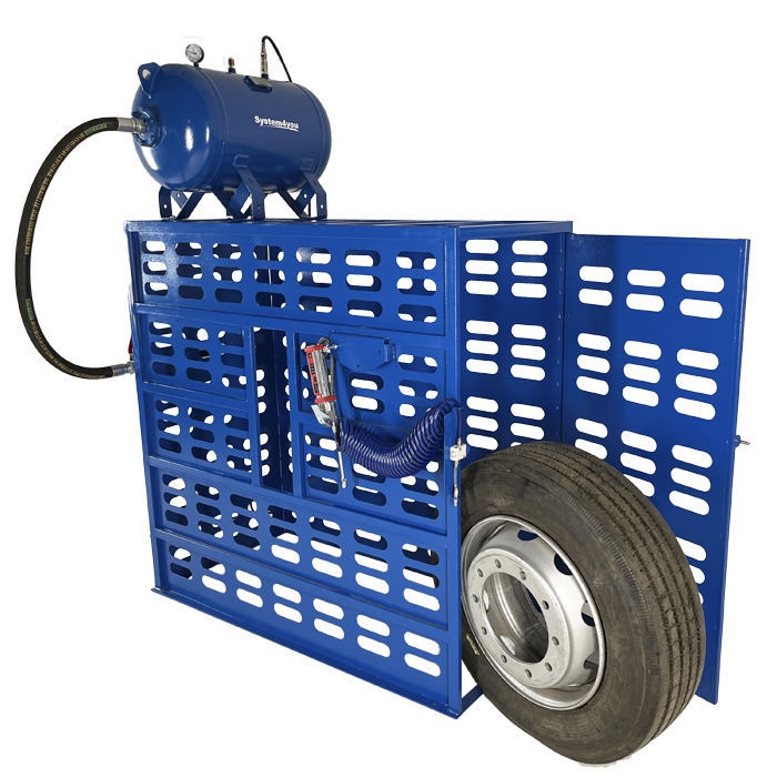 Клеть для безопасной накачки колес с пневматическим замком и бустером: без робота накачки.