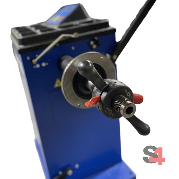 - Прямой ввод параметров литого диска — Достаточно выдвинуть штангу и упереть в плоскость диска: станок автоматически рассчитает диаметр и дистанцию